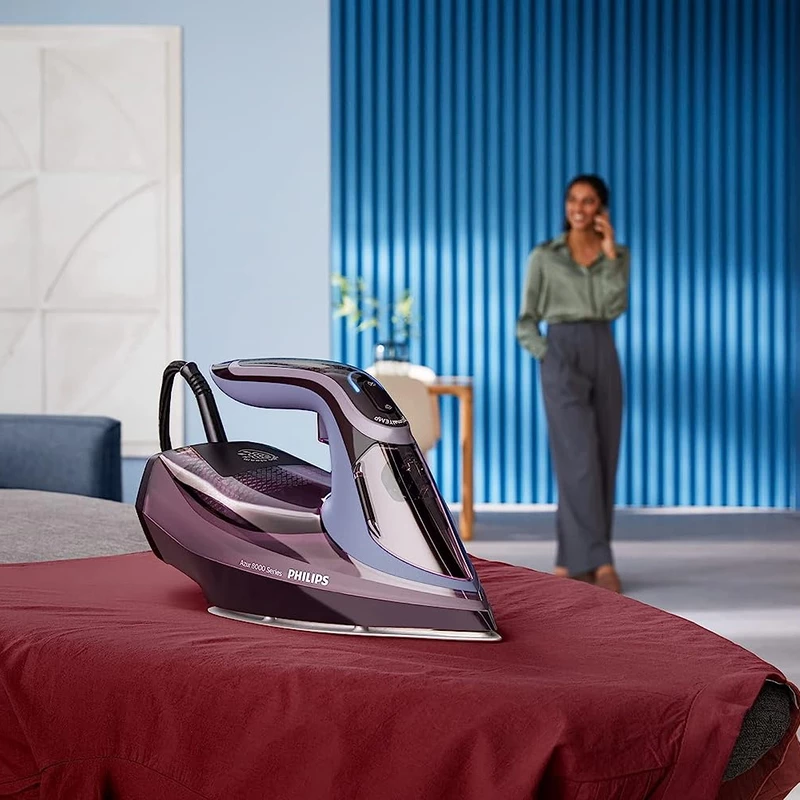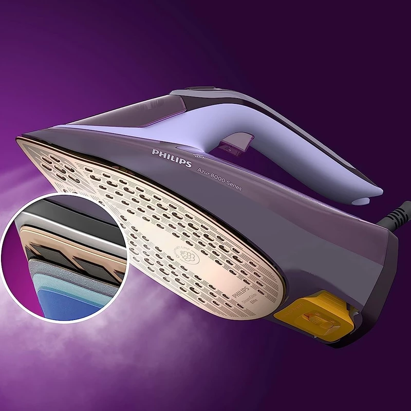 اتو بخار فیلیپس مدل DST۸۰۲۱ از سری ۸۰۰۰ محسوب میشود. این اتو از قوی ترین و بهترین اتو های فیلیپس به شمار می آید که در کشور اندونزی تولید و زیر نظر کشور هلند است که با رنگ بنفش در بازار لوازم خانگی توضیع می گردد. برای این اتوبخار قدرتمند ، مغز الکترونیک جدیدی به کار برده شده که وظیفه دارد نوع پارچه ای که به اتوکشی نیاز دارد را به صورت خودکار تشخیص دهد و دما را متناسب با جنس پارچه تنظیم کند. هوشمندی این دستگاه تضمین شده و برای تمامی پارچه ها ایمن است. علاوه بر عملکرد خاص و قدرت بالای این محصول ، دارای توان مصرفی ۳۰۰۰ وات است که با توجه به مصرف انرژی در کارکرد موتور تاثیر گذاشته تا اتو در کم ترین زمان گرم شده و برای اتوکشی آماده شود . با این محصول دیگر نگران سوختن لباس هایتان نباشید . هنگامی که اتو را فراموش کنید و روی لباس جا بگذارید ، اتو به طور هوشمند تشخیص می دهد و سپس با مرطوب کردن خودکار پارچه از سوختن آن یا دیگر حوادث جلوگیری می کند. هنگامی که اتو کردن لباس هایتان به پایان می رسد و فراموش می کنید که از کابل را از پریز برق جدا کنید ، اتو پس از ۸ دقیقه به صورت خودکار خاموش می شود و از مصرف زیاد برق جلوگیری می کند . مهم ترین فرایند در اتو بخار ، مخزن آب آن است که با توجه به آب داخل مخزن تولید بخار آغاز میشود و هچنین برای استفاده از اسپری آب ، از آب داخل مخزن کمک می گیرد . آب و تولید بخار در از بین بردن چین و چروک های سخت بسیار موثر است. حجم مخزن آب این اتو ۳۰۰ میلی لیتر است که با این حجم میتوان لباس ها و پارچه های زیادی را به صورت مداوم اتوکشی کنید. بخاردهی قدرتمند این دستگاه را دست کم نگیرید که این بخار در هر دقیقه به صورت پیوسته به مقدار ۵۵ گرم خارج می شود . این بخاردهی را می توانید تا سطح ۲۴۰ گرم افزایش دهید و این یکی از ویژگی های مهم و چشم گیر دستگاه است. در آب رسوباتی وجود دارد که ممکن است با وارد شدن آب ، به اتو آسیب بزند. راه حل این مشکل سیستم رسوب زدایی است . نوع سیستم رسوب گیری در اتو ها متفاوت است و برای این اتو بخار مخزن رسوب گیر در نظر گرفته شده . رسوبات در این محفظه جمع آوری می شود و از نشست آهک در اتوی شما جلوگیری می کند . باید در هر بازه زمانی ۲ یا ۳ ماه یک بار این مخزن را به راحتی از جای خود در بیاورید و آن را تمیز کنید . این کار طول عمر دستگاه را تا ۱۰ برابر افزایش می دهد. بسیاری از اتو های متفرقه کفه نا مناسبی دارند و به دلیل مقاوت پایین در اثر بر خورد با زیپ و دکمه های آهنی ، روی سطح کفه خش می افتد و یا در اثر ضربه آسیب می بینند. به همین دلیل در هنگام خرید اتو حتما باید اتویی را انتخاب کنید که کفه مرغوبی داشته باشد. کفه استیم گلاید الیت که برای این محصول به کار برده شده ، خیال کاربران را راحت تر کرده و با مقاومت بالایی که دارد قابلیت ضد خش بودن و ضد ضربه بودن را به خود اضافه کرده است. این امر در نگه داری و طول عمر اتو بسیار تاثیر گذار است. یکی از خصوصیات خاص این دستگاه داشتن سیستم (OptimalTEMP technology) است . این سیستم مصرف انرژی را کاهش می دهد و قدرت کارکرد را نیز افزایش میدهد و در عمر دستگاه بسیار تاثیر گذار است.